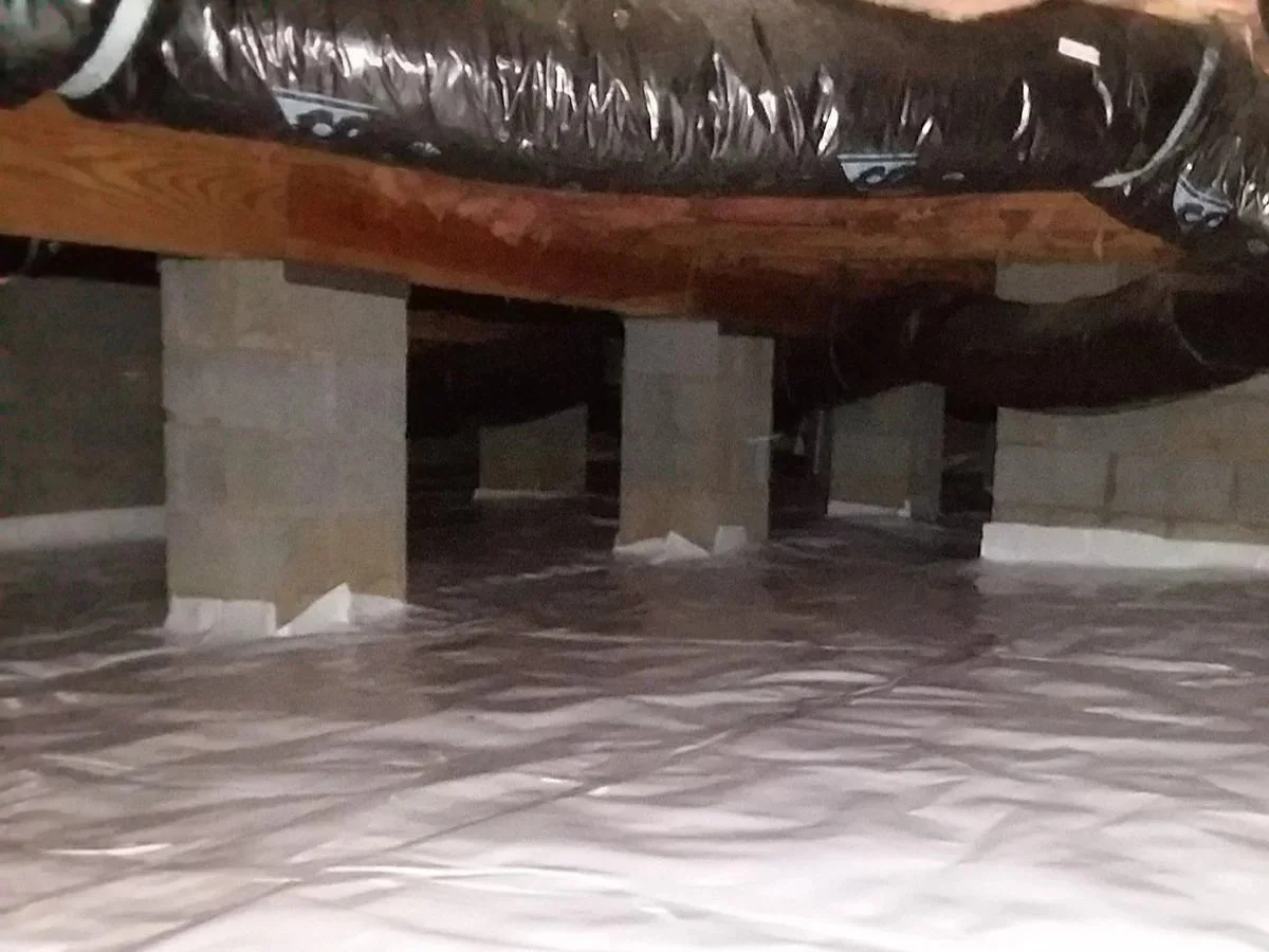 The most common thing present in all vented crawl spaces in North Carolina is moisture. This is caused by both hot and humid summers along with ample rains in the Spring and Fall. The majority of homes in the Triangle area were built with a dirt crawl space beneath the home and are vented. Depending on the age of your home your vapor barrier may be as simple as a sheet of plastic laid on the ground or it may not have a vapor barrier at all.